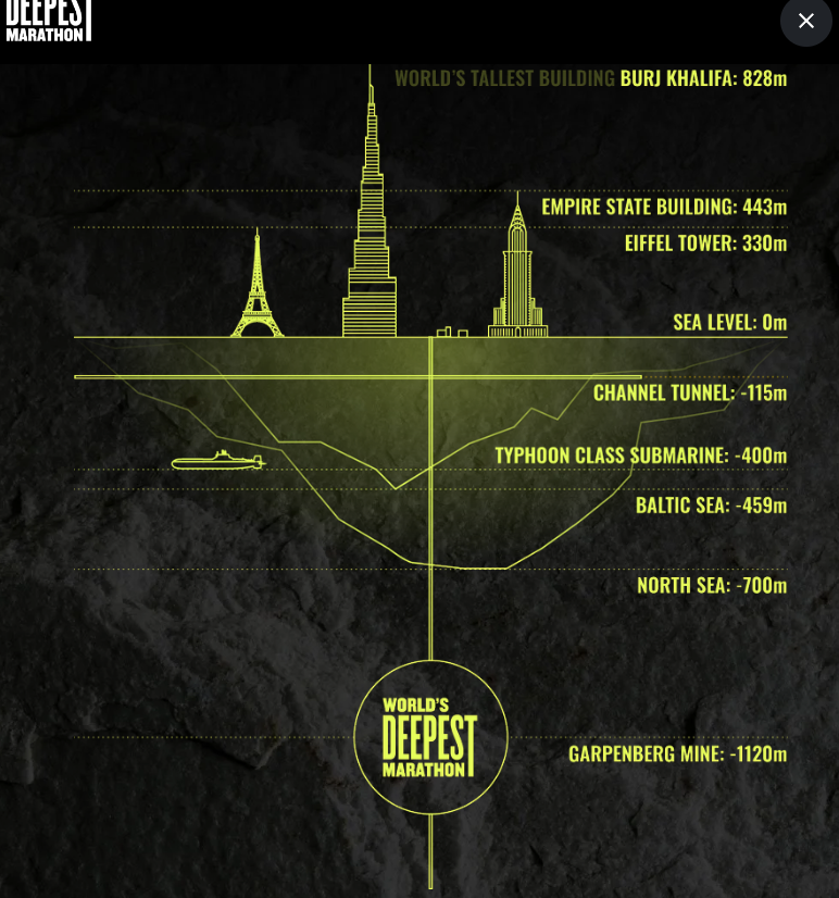 La prueba, que reunió a 60 corredores de 18 países, estableció dos récords Guinness: el del maratón más profundo jamás realizado y el de la mayor distancia subterránea completada por equipos. Los atletas, muchos de ellos vinculados al sector minero, recorrieron 11 vueltas a un circuito de 3,84 km hasta completar los 42,195 km reglamentarios, equipados con linternas frontales, cascos y camisetas reflectantes personalizadas.