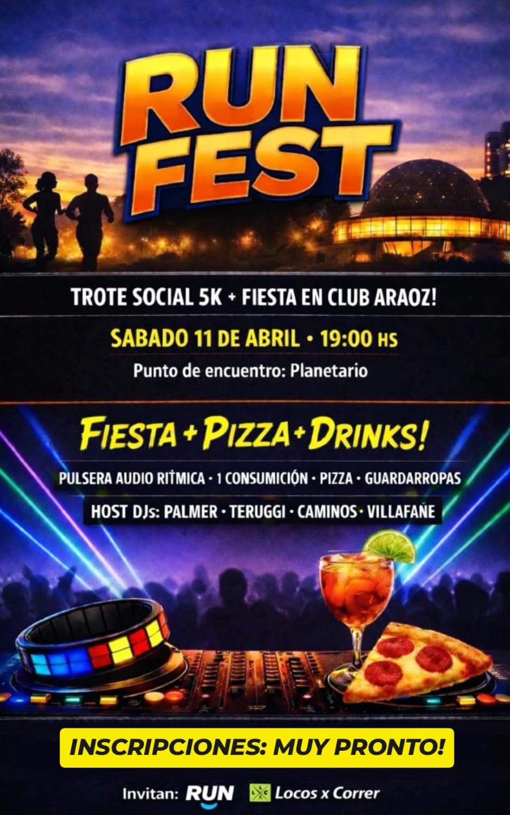 SÁBADO 11 de abril. Run Fest (social run con fiesta posterior en boliche). Ciudad de Buenos Aires