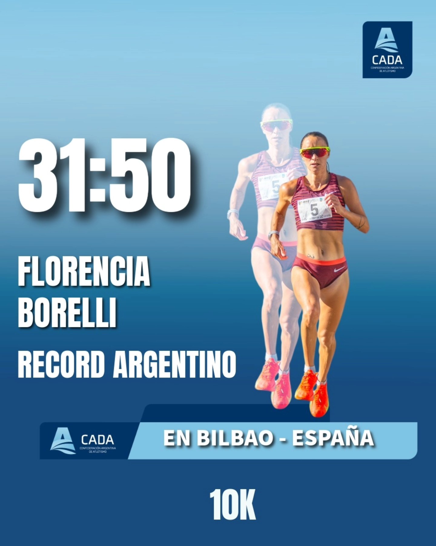 Con este nuevo récord argentino de 10K en ruta, Florencia Borelli continúa consolidándose como la mejor fondista en la historia del atletismo argentino y llega en gran forma a su próximo desafío en Londres, el próximo 26 de abril.